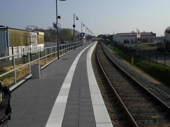 | Keywords: Burg train station (Fehmarn).jpg en Burg train station platform and track on the island of Fehmarn Germany <br>In the background left of the station clock you can perceive the old station building own Bukk 2011-04-20 Cc-zero Burg auf Fehmarn Train stations in Kreis Ostholstein Burg |