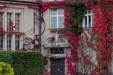 Keywords: burgher's house art nouveau architecture 1900 red wine partner leaves autumn fall foliage facade input