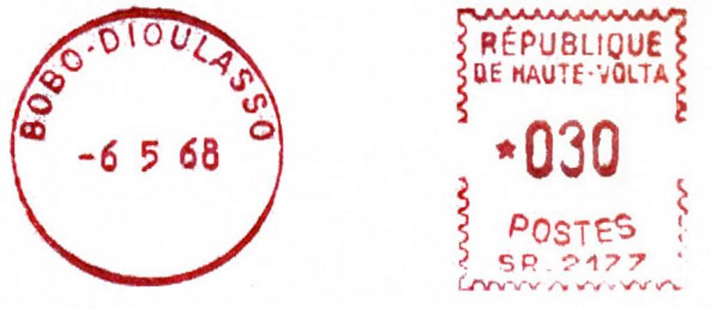Keywords: Burkina Faso A2.jpg en Meter stamp catalog image Burkina Faso type A2 Richard Stambaugh Richard Stambaugh 2005-10-01 Meter stamps of Burkina Faso