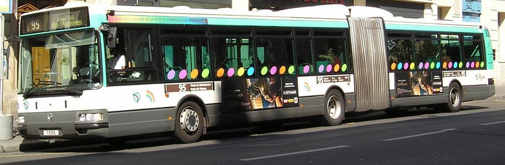 | Keywords: Bus ArticuleParis.jpg Original description when first upoloaded on fr wikipedia Description Autobus articulé Renault Agora L à Paris sur la ligne 95 de la RATP<br>Source Photographie de User Sebjarod en septembre 2004<br> Licence RATP bus route 95 RATP Agora L |