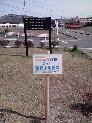 | Keywords: Bus Stop For Hustle.jpg Megumigaoka Isobe-chugakko-mae Megumigaoka Isobe Junior High School Bus stop for Isobe-chiiki yoyaku unko-gata Bus Isobe Area Reservation System Bus Hustle-go operated in Shima City Mie Prefecture Japan 三é‡ç Œå¿—摩市ã®ã‚³ãƒŸãƒ¥ãƒ‹ãƒ†ã‚£ãƒã‚¹ã Œç£¯éƒ¨å °åŸŸäºˆç´„é‹è¡Œåž‹ãƒã‚¹ãƒãƒƒã‚¹ãƒ«å·ã ã®ã Œæµãƒ¶ä¸˜ 磯部ä¸å¦æ ¡å‰ã å ç•™æ‰ Own 2009-03-21 Miyuki Meinaka Bus stop signs in Japan Bus stops in Mie prefecture Community buses in ChÅ«bu region Community buses in Kinki region Isobecho-Erihara |