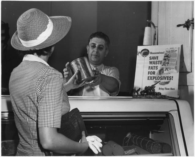 | Keywords: dwight d. eisenhower presidential library dwightdeisenhowerpresidentiallibrary u.s. national archives usnationalarchives world war ii worldwarii eisenhowernews nara:arcid=196419 butcher fat lard war drive can blackandwhite monochrome indoor black and white Original Caption: Butchers will pay householdersfor the fat and sell it to rendering plants where it will be processed into ammunition for America's fighting men. U.S. National Archives’ Local Identifier: NLR-PHOCO-A-66178(3) Created By: Roosevelt, Franklin D. (Franklin Delano), 1882-1945 From:: Franklin D. Roosevelt Library Public Domain Photographs Production Date: ca. 06/1942 Persistent URL: arcweb.archives.gov/arc/action/ExternalIdSearch?id=196419 Repository: Franklin D. Roosevelt Library (Hyde Park, NY) Access Restrictions: Unrestricted Use Restrictions: Unrestricted Original Caption: Butchers will pay householdersfor the fat and sell it to rendering plants where it will be processed into ammunition for America's fighting men. U.S. National Archives’ Local Identifier: NLR-PHOCO-A-66178(3) Created By: Roosevelt, Franklin D. (Franklin Delano), 1882-1945 From:: Franklin D. Roosevelt Library Public Domain Photographs Production Date: ca. 06/1942 Persistent URL: arcweb.archives.gov/arc/action/ExternalIdSearch?id=196419 Repository: Franklin D. Roosevelt Library (Hyde Park, NY) Access Restrictions: Unrestricted Use Restrictions: Unrestricted |