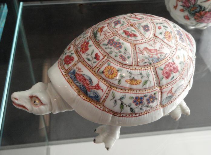 View Original:Butter-box in the form of a turtle, c. 1730, Du Paquier Factory, decorated in Holland, hard-paste porcelain, enamel, gold - Gardiner Museum, Toronto - DSC01083.JPG (3946x2897)
