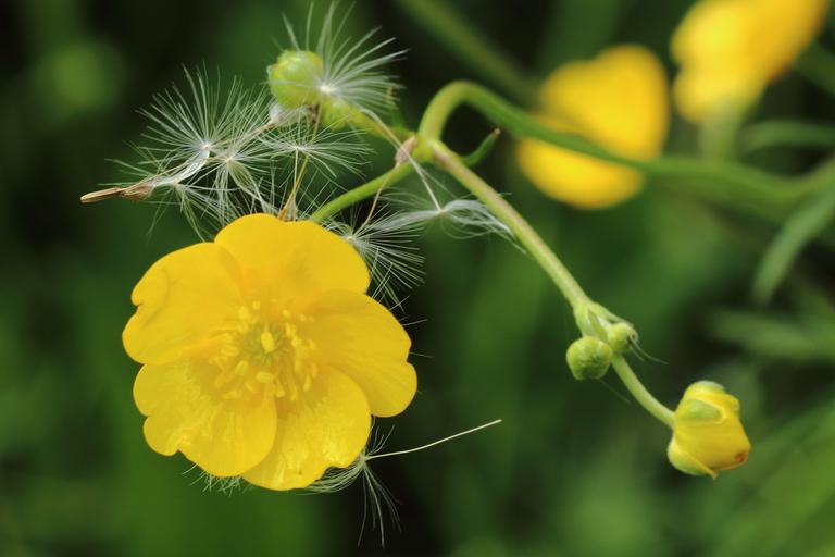 Keywords: buttercup blossom bloom seeds dandelion flying seeds yellow flower yellow bloom close up meadow spring early summer