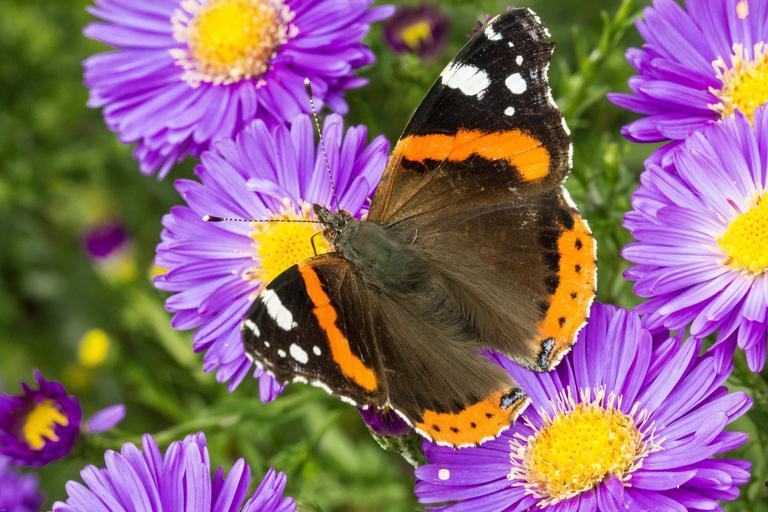 Keywords: butterfly admiral blossom bloom aster insect edelfalter flowers colorful red admiral