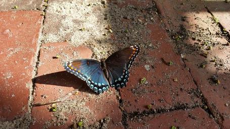 Keywords: butterfly close up butterflies animal insect colorful bug nature wings butterfly wings ground bricks pattern red bricks blue brown