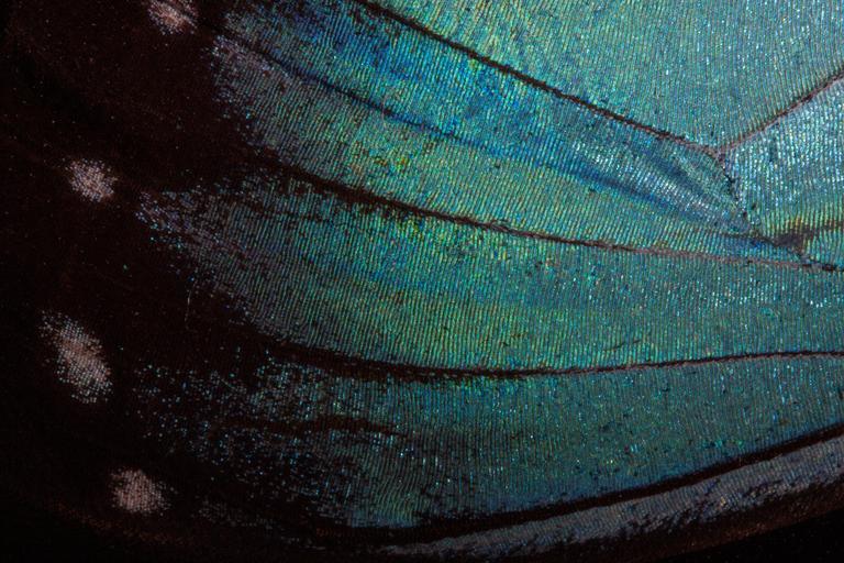 Keywords: butterfly exotic south america amazon iridescent scale wing scales turquoise blue green insect wing color brown white macro structure background fund