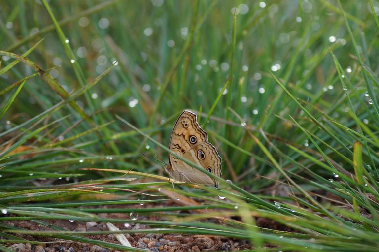 Keywords: butterfly grass garden water droplets droplets nature natural green environment insect spring outdoors season horizontal