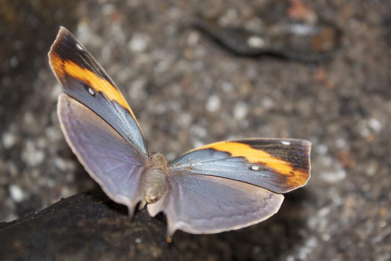 Keywords: butterfly grey orange wing insect gray nature rock iridescent shimmer