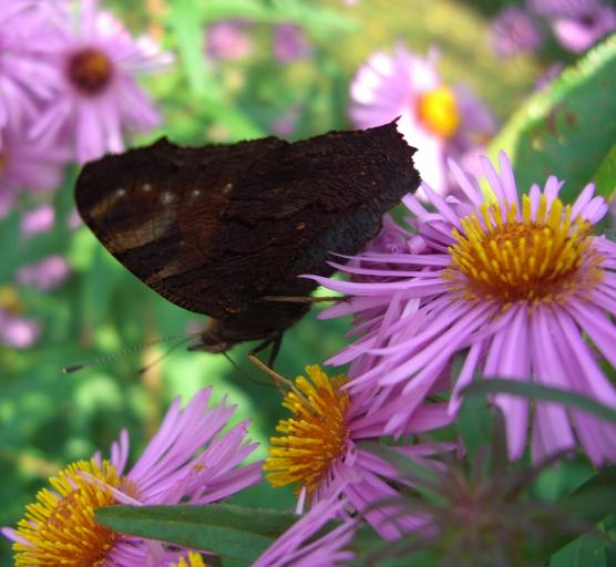Keywords: butterfly peacock butterfly wings closed herbstaster flower blossom bloom garden nature