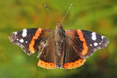 Keywords: butterfly red admiral vanessa atalanta attacked damaged wing adult orange colorful antenna