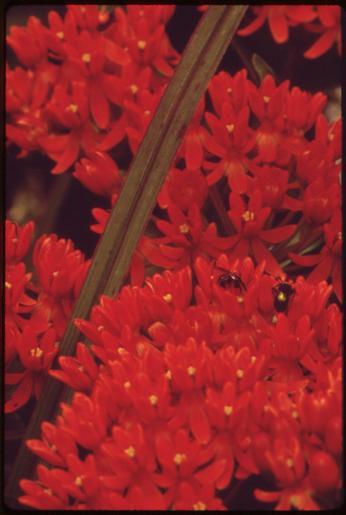 Keywords: BUTTERFLY WEED (ASCLEPIAS TUBEROSA) HAS A FRAGRANCE THAT ATTRACTS BUTTERFLIES THROUGHOUT THE SUMMER. BEES, TOO, AS... - NARA - 551380.tif Scope and content General notes 551380 Local identifier 412-DA-8895 Environmental Protection Agency 12/02/1970 - NARA-Author Kuykendall Bill Photographer 2708009 <br /> Lake of the Ozarks State Park Missouri United States North and Central America state park 3251098 38 083 -92 617 <br /> Still Picture Records Section Special Media Archives Services Division NWCS-S National Archives at College Park 8601 Adelphi Road College Park MD 20740-6001 07/1973 Record group Record Group 412 Records of the Environmental Protection Agency 1944 - 2006 Record group ARC 708 DOCUMERICA The Environmental Protection Agency's Program to Photographically Document Subjects of Environmental Concern compiled 1972 - 1977 Series ARC 542493 File unit File unit ARC Variant control numbers Agency-Assigned Identifier 149/15/008895<br /> NAIL Control Number NWDNS-412-DA-8895 yes Other versions <gallery> File BUTTERFLY_WEED_ ASCLEPIAS_TUBEROSA _HAS_A_FRAGRANCE_THAT_ATTRACTS_BUTTERFLIES_THROUGHOUT_THE_SUMMER _BEES _TOO _AS _-_NARA_-_551380 tif tif File BUTTERFLY_WEED_ ASCLEPIAS_TUBEROSA _HAS_A_FRAGRANCE_THAT_ATTRACTS_BUTTERFLIES_THROUGHOUT_THE_SUMMER _BEES _TOO _AS _-_NARA_-_551380 jpg jpg </gallery> NARA-cooperation PD-USGov Asclepias tuberosa Red flowers Insects on Gentianales flowers NARA TIF images with categorized JPGs