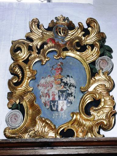 | Keywords: Buxach Dreieinigkeitskirche Wappen Schütz.jpg  Eines der vielen Wappen der Kirchenspender in der Dreieinigkeitskirche Buxach I V S I/J v Schütz 1757 own 2008-06-14 User Memmingen Dreieinigkeitskirche Buxach Paintings of coats of arms Coats of arms of Schütz family Memmingen Coats of arms in Memmingen 1757 paintings |