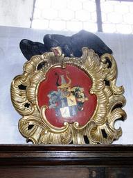 | Keywords: Buxach Dreieinigkeitskirche Wappen Wachter 1758.jpg  Eines der vielen Wappen der Kirchenspender in der Dreieinigkeitskirche Buxach aus dem 18 Jahrhundert; Wappen Wachter mit Jahreszahl 1758 own 2008-06-14 User Memmingen Dreieinigkeitskirche Buxach Paintings of coats of arms Coats of arms of Wachter family Coats of arms in Memmingen 1758 paintings |