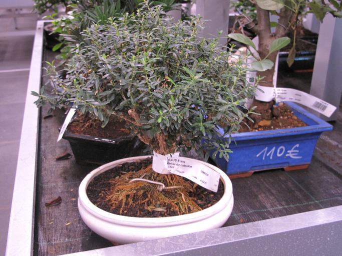 | Keywords: Buxus bonsai.jpg en Buxus shaped as bonsai in a garden centre Identified by its commercial botanic label fr Buis taillé en bonsai dans une jardinerie Identifié par son étiquette botanique commerciale own Tangopaso 2012-11-10 Buxus bonsai Truffaut garden centres in France Plants identified by botanic label |
