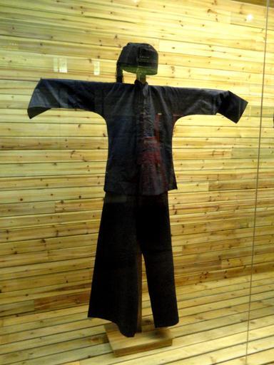 Keywords: Buyi man polished-cloth clothes - Yunnan Nationalities Museum - DSC04246.JPG Buyi man polished-cloth clothes Clothing exhibited in the Yunnan Nationalities Museum Kunming Yunnan China I took this photograph 2011-08-13 02 14 49 Daderot Public domain Clothing in the Yunnan Nationalities Museum Buyei clothing |