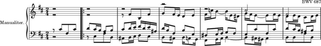 Keywords: Bwv687-preview.png Start of BWV 687 from Clavier-à bung III Mutopia 1739 Creator Johann Sebastian Bach PD-old-100 Original upload log en wikipedia Bwv687-preview png 2010-07-01 09 10 Mathsci 800×115× 22292 bytes <nowiki> Start of BWV 687 from Clavier-à bung III Mutopia 1739 J S Bach </nowiki> BWV 669 “689 “ Chorale preludes from Clavier-à bung III Aus tiefer Not schrei ich zu dir |