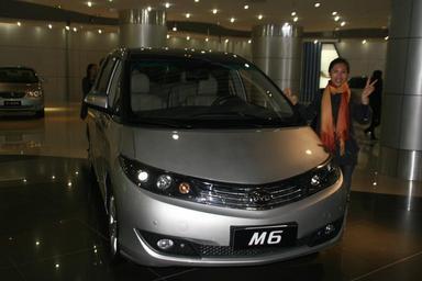 Keywords: BYD 09.JPG en BYD's M6 in the show room of the headquarter in Shenzhen own Brücke-Osteuropa 2010-11-05 BYD M6 People with automobiles Grey station wagons Standing people