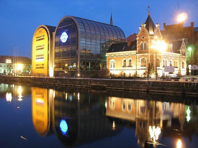 Keywords: Bydgoszcz pałacyk Lloyda i nowe spichrze.jpg pl Pałacyk LLoyda i Nowe Spichrze w Bydgoszczy - panorama od strony Brdy own Pit1233 2006 Glass granaries in Bydgoszcz at night Bydgoszcz Waterfront at night Night in Bydgoszcz