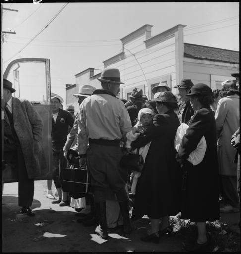 | Keywords: Byron, California. The moment has come for these farm families of Japanese ancestry to board the bu . . . - NARA - 537464.jpg Scope and content The full caption for this photograph reads Byron California The moment has come for these farm families of Japanese ancestry to board the bus which will take them from their homes and ranches to the Assembly center 65 miles away General notes 537464 Local identifier 210-G-C109 Department of the Interior War Relocation Authority 02/16/1944 - 06/30/1946 NARA-Author Lange Dorothea 1895-1965 Photographer 1372774 <br /> Still Picture Records Section Special Media Archives Services Division NWCS-S National Archives at College Park 8601 Adelphi Road College Park MD 20740-6001 1942-05-02 Record group Record Group 210 Records of the War Relocation Authority 1941 - 1989 Record group ARC 537 Central Photographic File of the War Relocation Authority compiled 1942 - 1945 Series ARC 536000 File unit File unit ARC Variant control numbers NAIL Control Number NWDNS-210-G-C109 Other versions <gallery> File Byron _California _The_moment_has_come_for_these_farm_families_of_Japanese_ancestry_to_board_the_bu_ _ _ _-_NARA_-_537464 tif tif File Byron _California _The_moment_has_come_for_these_farm_families_of_Japanese_ancestry_to_board_the_bu_ _ _ _-_NARA_-_537464 jpg jpg </gallery> NARA-cooperation PD-USGov Dorothea Lange Japanese American internment processing in Byron California |