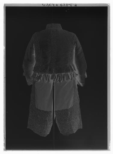 | Keywords: Byxor av brunaktig grå, oskuren sammet som tillhört Karl X Gustav (1622-1660), ca 1650 - Livrustkammaren - 1359-negative.tif Byxorna är av samma grå oskurna sammet som kappan och av rak modell De är gjorda av 4 stycken som förutom sidorna sytts samman fram och bak Mitt framtill är ett c a 30 cm långt sprund som knäpps med en 25 cm lång knäppslå Byxorna är med glesa rynkor fästade vid en 122 cm lång linning - försedd med blott en enda skarv Denna har 6 metallhakar vilka genom fodret på baksidan trätts genom linningen I linningen återstår för närvarande blott de 5 cm långa knapphålen ty de 2 knapparna saknas I knäppslån sitter 8 st knapphål 2 cm långa sydda av 2 trådar av brunt högertvinnat silke med 5 stygn/cm Samma antalknappar finns kvar på motstående sida De är av samma sort som tröjans guld- och silvertrådsklädda knappar Byxorna har i sidsömmarna 17 cm långa sprund för de stora ficksäckarna av skinn Dessa liksom knäppslån är fodrade med samma slags brokad som tröjansfoder <br/><br/>Anmärkningsvärt är att dessa byxor saknar såväl den vanligen förekommande lilla urfickan i linningen på vänster sida framtill som den mindre vertikala fickan på högra framsidan Byxorna är på insidan fodrade med vit linnelärft c a 26x23 tr/cm2 mellanfoder saknas Byxorna är garnerade med en 15 5 cm bred oliksidig knypplad uddspets av guld- och silvertråd samma slag som på kappan Den är påsydd i 2 rader nertill runt benen samt 1rad på varje sida om sidsömmen Som garnering har dessutom bandrosetter sytts fast runt hela midjan delvis på och delvis strax under linningen <br/><br/>Nu finns 20 st sådana rosetter samt något längre ner framtill 3 rosetter på vänster sida och 2 på höger Spår efter ytterligare 2 rosetter finns på linningen och vidare bör det ha funnits en rosett som sprättats bort från höger sida M a o det stämmer bra med 1671 års inventarium som omtalar 28 st silver- guld- och silkesband Rosetterna har knutits i 2 öglor och 2 ändar dels av ett bredare band i silver och mörk olivfärgat silke b 3 3 cm delas av ett smalare band knutet på samma sätt i övervägande vitt och silver b 1 2 cm Bandåtgången kan beräknas till varje rosett av det breda bandet har dragit c a 58 cm varje rosett av det smala bandet har dragit c a 56 cm Om det ursprungligen funnits 28 rosetter har bandåtgången varit 16 24 meter för breda band och 15 68 meter för smala band <br/><br/>Där spetsgarneringen fastsytts har man under sammeten lagt in ett foder av grövre vävnad På höger framsida har byxorna ett urbränt stycke i linnefodret Likaså är hål brända på byxornas insida vid hakarna närmast fickorna Vid något senare tillfälle har man lagt ett veck framtill på varje sida på linningen och 2 hyskor och hakar har sytts fast Byxorna är märkta med bläck baktill N 44 samt har en lapp med inskr 34 Det förra numret från 1789-90 års inventarium det senare till 1821 1850 och 1855 års inv original caption 1647 velvet Färg grå d1 - dräkt - yttermaterial material sammet size cm 122 midjemått LRK Karl X Gustav av Sverige Tre Karlar 1984-1985 Kungligt klädd 1987-1989 Modelejon 2002 place of origin original filename LN_B10720_013600 56375 inventory number LRK 19830 1359 CC0 Byxor av brunaktig grå oskuren sammet som tillhört Karl X Gustav 1622-1660 ca 1650 - Livrustkammaren - 1359 tif <gallery caption Different images of same object > File Byxor av brunaktig grå oskuren sammet som tillhört Karl X Gustav 1622-1660 ca 1650 - Livrustkammaren - 9919 tif File Byxor av brunaktig grå oskuren sammet som tillhört Karl X Gustav 1622-1660 ca 1650 - Livrustkammaren - 18481 tif File Byxor av brunaktig grå oskuren sammet som tillhört Karl X Gustav 1622-1660 ca 1650 - Livrustkammaren - 78404 tif </gallery> |