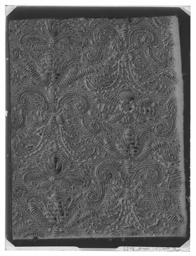 | Keywords: Byxor av guldlamé helt täckt av guldbroderi - Livrustkammaren - 45384-negative.tif LSH artwork sv Dräkten beställdes 1654 från Frankrike genom Magnus Gabriel de la Gardie inför festligheterna vid Karl X Gustavs kröning och efterförljande bröllop Byxor av rak modell De är sydda av 4 egentliga huvudbeståndsdelar som dock försetts med skarvar av något varierande storlek nertill horisontellt för att öka längden samt vertikala ökningstycken framtill vid sprundet och på motsvarande ställen baktill och slutligen nertill vid byxbenens inre sömmar Ursprungsmaterialet är gul filemort oskuren sammet men skarvstyckena är något mörkare med dragning åt rött i färgen Ursprungsmaterialets vådbredd är minst 43 cm 14 rader oskurna öglor på rätan Byxorna har raka sömmar i sidorna och svagt sneddade fram och baksömmar Framtill är ett 34 cm långt sprund När sprundens längd angives i texten inbegripes aldrig linningen med en c a 29 cm lång knäppslå med 12 knapphål knäppslån följer i hela sin längd det iskarvade mörkare stycket framtill Byxorna är något rynkade vid den 127 5 cm långa linningen som också försetts med flera skarvar baktill I denna finns de 2 stora 2 1 cm i diam guldtrådsklädda knapparna kvar De knäpps med de 4 cm långa knapphålen på vänster framsida I linningen finns 7 st silverhakar kvar den främsta på vänster sida som skulle träs genom det lilla tränsade hålet vid urfickan saknas Linningen är gjord av något grövre oskuren sammet Linningsknapparna är av samma typ som den som finns kvar i byxorna till dräkt nr 3418 De 2 stora byxfickorna har 22 5 cm långa vertikala sprund i sidsömmarna Ficksäckarna är av skinn På höger framstycke finns också en mindre ficka med vertikalt sprund 19 cm från framkanten räknat Dessa 3 fickor har stoffering med gul moiré samma sort som också begagnats i fickan på byxlinningen till dräkt nr 3418 Knapphålsslån är på rätan gjord av guldbrokad av samma sort som tröjans foder och av relativt mörk sammet på baksidan De 2 cm långa knapphålen är sydda med 8 stygn/cm av gult högertvinnat silke Ficksprunden och knäppslån samt sprunden vid framkanterna är skodda med kastanjebrunt ripsband 14 inslagstr/cm Mellanfoder finns ej i byxorna men de har innerfoder av ursprungligen vit linnelärft 28x28 tr/cm2 Nedtill kan man i fodret se hål efter stygn ca 3 5 cm från kanten som tyda på att en slå eller skoning varit sydd på insidan Byxorna har garnerats med spets knypplad av guldtråd och med inlagda guldlan - samma typ som på tröjan Analysresultat Metalltråd av förgyllt silver legerat med koppar huvudbeståndsdelar Silver xxxGuld xxKoppar xxxZink 0Numera finns det spets kvar blott nedtill vid benen ca 1 8 cm bred Den är knypplad av ljusgul silkeskärna med högertvinnad guldlan samt 2 bandformiga lan varav en ligger intill spetsens stadkant och en i vinkelböjning lanen är 2 mm bred Förutom av spetsen nertill garneras byxorna av rosetter framtill av vilka de ursprungliga 5 alltjämt finns kvar på varje sida 3 i en övre horisontell rad och 2 därunder Rosetterna består dels av ett 2 5 cm brett metalltrådsband med 2 atlasränder av rött silke ca 18 inslagstr/cm som knutits i 3 öglor varje ögla 16 á 17 cm lång samt dels ett 4 2 cm brett metalltrådsband med bl a mönstervävda ränder i brunt silke 17 inslagstr/cm som också knutits i 3 öglor c a 16 cm i varje ögla Analysresultat band huvudbeståndsdelar Silver xxxGuld 0Koppar xZink 0På byxornas bakstycken finns ett par vertikala uppklipp ca 15 cm långa som sytts ihop På vänster sida framtill i linningen är byxorna på insidan märkta med bläck N 39 i 1789-90 års inv och de är urbrända i jämnhöjd med knapphålsslån ett stycke in i fodret Beträffande broderiets karaktär kan nämnas att de mörkare partierna skarvats om till det ursprungliga plagget har broderats med visserligen samma mönster men mer utdraget glesare och spretigare och samtidigt svulstigare och man har tydligen inte vetat vilka mönsterdetaljer som är huvudsakliga och vilka som är underordnade Sålunda har palmbladskvistarna vanligen 4 kvistar åt resp håll på det ursprungliga broderiet men oftast blott 3 på de mörkare partierna Bladkvistarna har i de nyare - sekundära mörkare styckena blivit lika breda nedtill som upptill vilket också utgör en skillnad mot det ursprungliga broderiet Vidare är bågarna som hålla palmkvistarna mer svängda och har 7 jämnstora kulor över sig Man har dock i de tillskarvade partierna låtit mönstret fortsätta på det mest eleganta sätt Blott i sidsömmarna stämma mönstren numera ej överens men här har ju en spets dolt sömmen Det gamla broderiet verkar därtill gulare I byxornas nederkant fortsätter broderiet i det lilla upp- och invikta stycket Här har man alltså haft en ytterligare marginal att släppa på Broderiet har ej avpassats efter plaggets form med någon avslutande bård eller dylikt nedtill det är helt yttäckande och följer materialets riktning original caption Karl X Gustavs kröning 1654 linen Färg vit d2 - dräkt - foder material linnelärft - velvet Färg gul röd d1 - dräkt - yttermaterial material sammet size mm 127 5 midjemått LRK Karl X Gustav av Sverige Tre Karlar 1984-1985 Sweden - A Royal Treasury 1988-1989 Modelejon 2002 Les arts décoratifs sous Louis XIII 2002 Sweden and Europe 1632-1792 2003-2004 Fest och fritid vid hovet 2003 Livrustkammaren nya basutställning 2018 LRK bas 2018 Livrustkammaren place of origin original filename LN_E04581 67902 inventory number LRK 31309 45384 CC0 Byxor av guldlamé helt täckt av guldbroderi - Livrustkammaren - 45384 tif <gallery caption Different images of same object > File Byxor av guldlamé helt täckt av guldbroderi - Livrustkammaren - 11141 tif File Byxor av guldlamé helt täckt av guldbroderi - Livrustkammaren - 79627 tif File Byxor av guldlamé helt täckt av guldbroderi - Livrustkammaren - 53945 ti