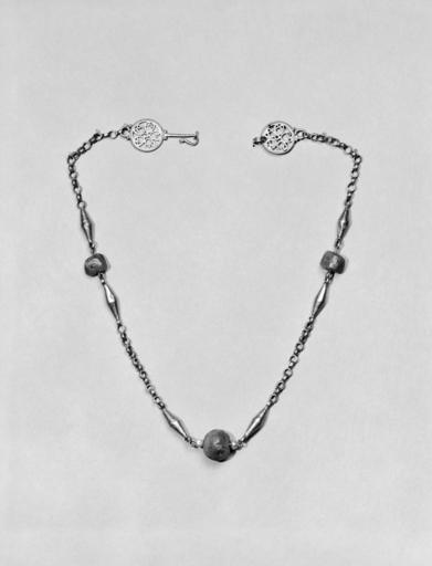 | Keywords: Byzantine - Necklace - Walters 571817.jpg Wealthy women in the Byzantine Empire favored elaborate necklaces such as these Pearls and emeralds from Egypt were most highly prized although amethysts evoked the imperial use of the color purple century 5 7 Late Antique gold pearls and green stones 1/2 x 6 5/8 x 7 3/16 1 3 x 16 8 x 18 2 cm accession number 57 1817 37292 Zakieh Pasha Cairo by purchase Joseph Brummer Paris and New York date of acquisition unknown by purchase Sale Parke-Bernet New York May 11 1949 no 9 Walters Art Museum 1949 by purchase Museum purchase 1949 Jewelry - Ancient to Modern The Walters Art Gallery Baltimore 1979-1980 place of origin Netherlands Walters Art Museum license Ancient Roman art in the Walters Art Museum Byzantine and Early Russian art in the Walters Art Museum Jewellery in the Walters Art Museum Byzantine art in Egypt |