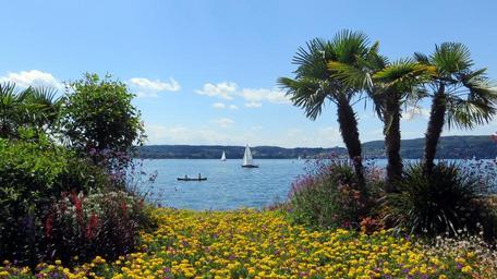 Keywords: überlingen lake constance city village tourism promenade palm trees flowers lake water ships