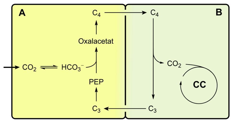 Keywords: C4 plants.svg inkscape en broad overview over C4 plants with Kranz anatomie de allg à bersicht C4-Pflanzen mit Kranzanatomie Own Yikrazuul 2009-04-03 Hatch-Slack cycle SVG photosynthesis