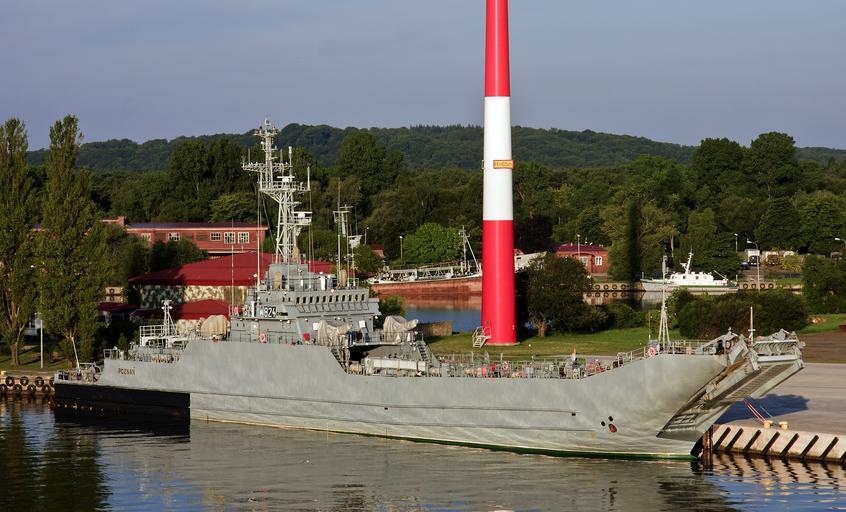 Keywords: świnoujście poland ship bay harbor water lighthouse forest trees woods outside town village reflections summer spring