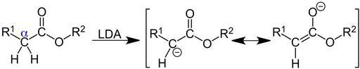 Keywords: C,H-Acidity Esters V.1.svg en C H-Acidity of Esters de C H-Acidität von Estern Deprotonierung und Bildung von Enolaten own Jü 2012-09-08 Carboxylate esters Cc-zero