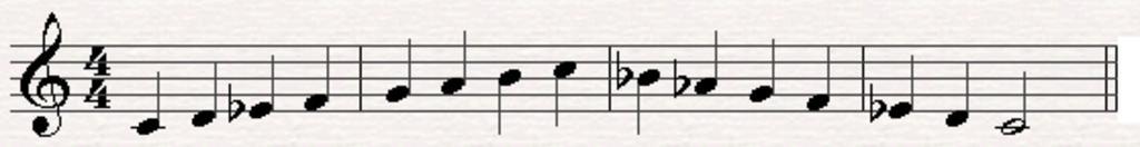 Keywords: C melodic.png Image of scale C melodic minor on treble clef Own 2006-12-14 Aidan Hanrath Released into the Public Domain Musical scales in C