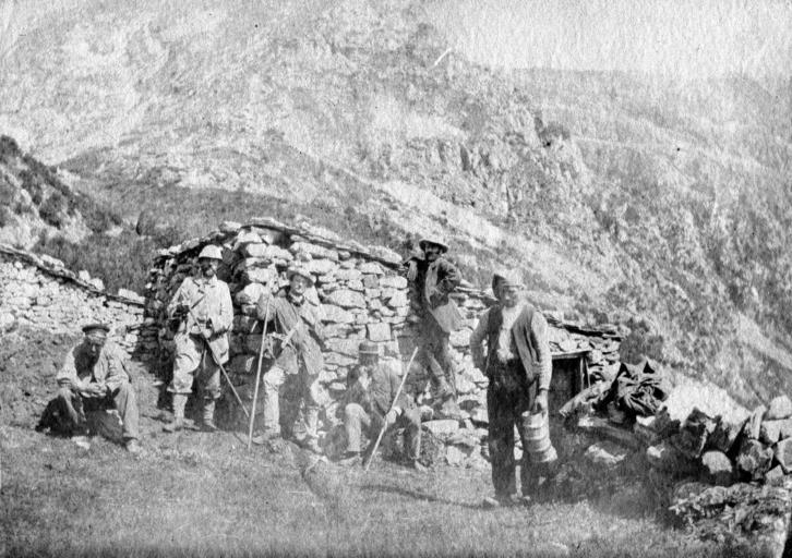 | Keywords: monochrome blackandwhite outdoor black and white Fonds Trutat - Photographie ancienne Cote : TRU B 257 Localisation : Fonds ancien (S 30) Original non communicable Titre : Cabane de berger, Saleich [Saleix], 17 juillet 1882 Auteur : Trutat, Eugène Rôle de l’auteur : Photographe Lieu de création : Vicdessos (Ariège ; canton) Date de création : 1882 Mesures : : 13 x 18 cm Observations : Notes manuscrites Trutat : "Obj[ectif] hémisph[érique] rapide ; papier Morgan ; B 192". Mot(s)-clé(s) : -- Montagne -- Rocher -- Végétation -- Refuge (montagne) -- Cabane -- Pierre -- Groupe -- Homme -- Costume masculin -- Chapeau -- Randonnée pédestre -- Bâton (marche) -- Muret -- Versant rocheux -- Eté -- Berger -- Saleix (Ariège) -- Auzat (Ariège) -- Vicdessos (Ariège ; canton) -- Vicdessos (France ; vallée) -- Pyrénées (France) -- Saleix, Col de (France) -- 19e siècle, 4e quart Médium : Photographies -- Négatifs sur papier -- Noir et blanc -- Morgan -- Paysages -- Portraits de groupe Voir : TRU B 252 Saleich [Saleix], avec Regnault, au-dessus de TRU B 253 Col de Saleich [Saleix], cabane de berger, 17 TRU B 256 Berger occupé à traire une vache ( M. Cochet), col TRU B 258 Cabane de berger, Saleich [Saleix], 17 juillet TRU B 259 Cabane de berger, col de Saleich [Saleix], numerique.bibliotheque.toulouse.fr/cgi-bin/library?c=phot... Bibliothèque de Toulouse. Domaine public Fonds Trutat - Photographie ancienne Cote : TRU B 257 Localisation : Fonds ancien (S 30) Original non communicable Titre : Cabane de berger, Saleich [Saleix], 17 juillet 1882 Auteur : Trutat, Eugène Rôle de l’auteur : Photographe Lieu de création : Vicdessos (Ariège ; canton) Date de création : 1882 Mesures : : 13 x 18 cm Observations : Notes manuscrites Trutat : "Obj[ectif] hémisph[érique] rapide ; papier Morgan ; B 192". Mot(s)-clé(s) : -- Montagne -- Rocher -- Végétation -- Refuge (montagne) -- Cabane -- Pierre -- Groupe -- Homme -- Costume masculin -- Chapeau -- Randonnée pédestre -- Bâton (marche) -- Muret -- Versant rocheux -- Eté -- Berger -- Saleix (Ariège) -- Auzat (Ariège) -- Vicdessos (Ariège ; canton) -- Vicdessos (France ; vallée) -- Pyrénées (France) -- Saleix, Col de (France) -- 19e siècle, 4e quart Médium : Photographies -- Négatifs sur papier -- Noir et blanc -- Morgan -- Paysages -- Portraits de groupe Voir : TRU B 252 Saleich [Saleix], avec Regnault, au-dessus de TRU B 253 Col de Saleich [Saleix], cabane de berger, 17 TRU B 256 Berger occupé à traire une vache ( M. Cochet), col TRU B 258 Cabane de berger, Saleich [Saleix], 17 juillet TRU B 259 Cabane de berger, col de Saleich [Saleix], numerique.bibliotheque.toulouse.fr/cgi-bin/library?c=phot... Bibliothèque de Toulouse. Domaine public |