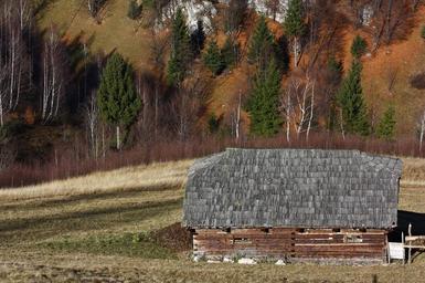 Keywords: cabin mountains fall landscape building alpine