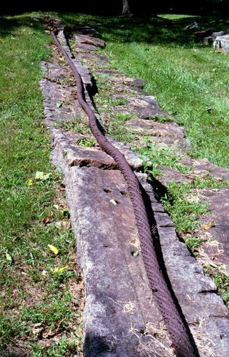 Keywords: Cable on Sleeper.jpg en Section of Roebling Cable located at Inclined Plane 9 West This cable pulled up and lowered down boat cradles on the plane with an elevation of approximately 125 feet own Speedfox51 2008-09-17 It is my work and has not been published Morris Canal John A Roebling Steel wire ropes |