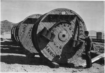 MAKE A MEME View Large Image Cables and sockets for permanent 150-ton cableway in storage at Boulder City yards. These are 3-1-2" fabrications... - NARA - 293821.jpg Scope and content Photograph from Volume Two of a series of photo albums documenting the construction ...