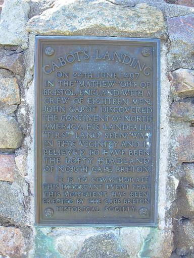Keywords: Cabotslanding.jpg en A photo depicting the plaque dedicated to John Cabot at the sight at which North America was discovered own Freshfighter9 2008-08-16 Cape Breton Island