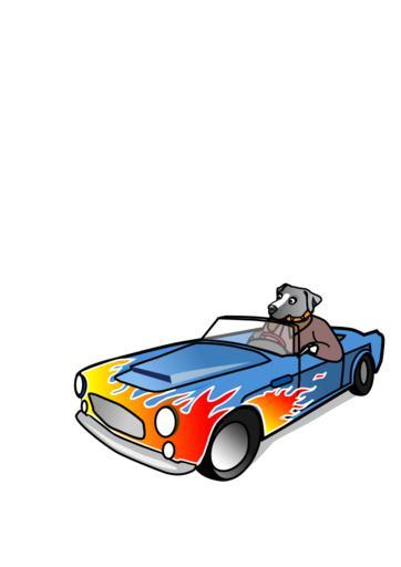 Keywords: cabriolet convertible drop-head coupe car driving dog hound mutt performance sports vehicle flames fiery roadster cartoon