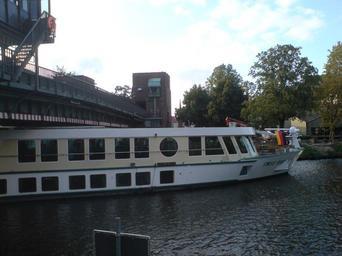 Keywords: Cäcilienbrücke in Oldenburg.jpg en Vessel Swiss Ruby on the german Küstenkanal coast canal underrunning the bridge Cäcilienbücke in Oldenburg Oldb de Flußkreuzfahrtschiff Swiss Ruby auf dem Küstenkanal Durchfahrt unter der Cäcilienbrücke in Oldenburg Oldb own Anaconda74 2009-08 21 Transport in Oldenburg Oldenburg Küstenkanal Swiss Ruby ship 2002 Iron road bridges in Lower Saxony |