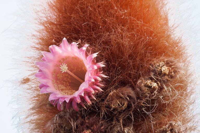 Keywords: cactus blossom bloom pink white tender hair plant brown nature flora