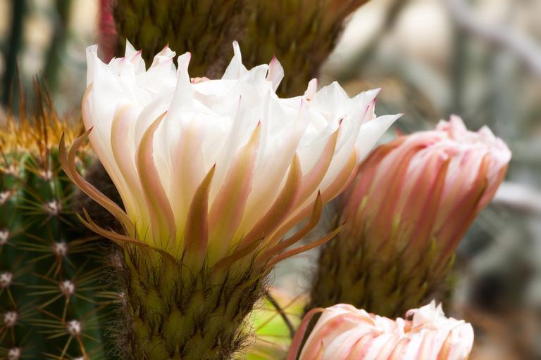 Keywords: cactus blossom bloom white pink plant prickly thorns pointed nature sting close macro pieksig ornamental plant desert plant bloom cactus garden cactaceae
