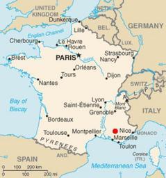 Keywords: Cadarache (red dot) CIA World Factbook map.png After seeing http //upload wikimedia org/wikipedia/en/5/56/1cadarache-arrow JPG http //upload wikimedia org/wikipedia/en/5/56/1cadarache-arrow JPG my eyes hurt from its highly unprofessional look I was sure I could do better in 10 seconds so here is a map showing roughly the location of the Cadarache research center The map is based on the CIA World Factbook article on France updated in November 2005 with a red dot placed as accurately as I could on the location of Cadarache based on the ugly image mentioned above and external maps PD-USGov Cadarache ITER Nuclear power plant maps |