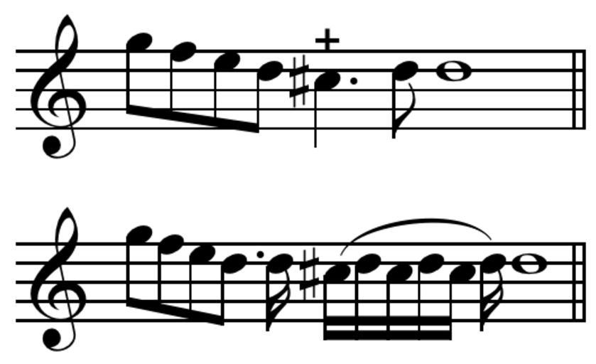 | Keywords: Cadence parfaite and same, drawn out.png en Baroque cadence parfaite 'authentic cadence' trill above and the same drawn out below 2011-03-14 own Created by Hyacinth talk 07 39 14 March 2011 UTC using Sibelius 5 File Cadence parfaite and same drawn out mid and File Cadence parfaite and same drawn out Baroque mid PD-music relicense Original upload log en wikipedia FtCG page en wikipedia Cadence_parfaite_and_same _drawn_out png wikitable Date/Time Dimensions User Comment - 2011-03-14 07 39 529 × 323 7 892 bytes Hyacinth w en <nowiki> Created by ~~~~ using Sibelius 5 See File Cadence parfaite and same drawn out mid PD-music relicense Music images Monochrome images </nowiki> Cadences Ornaments music |