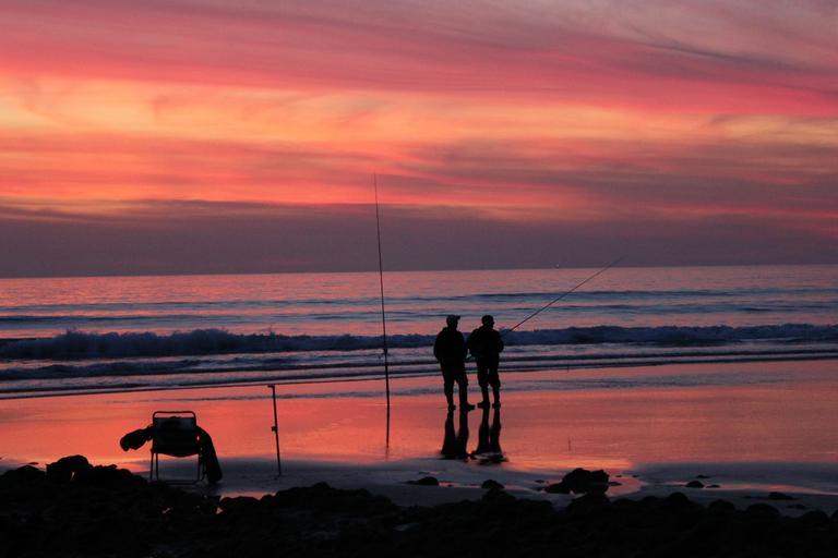 Keywords: cadiz spain nature beach coastal the light of the sun water ocean sunset sky andalusia silhouettes romantic man fishing fisherman