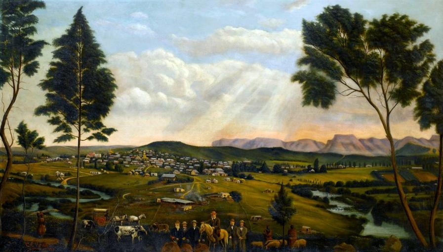 | Keywords: Caesar Carl Hans Henkel02.jpg en Panoramic view of Umtata and the Drakensberg mountains Eastern Province South Africa oil on canvas 42 1 x 72 in / 107 x 183 cm http //www artnet com/Artists/LotDetailPage aspx lot_id E246AEB927C8A07F85841AEF4DBA0821 Caesar Carl Hans Henkel 1839-1913 South African soldier botanist painter cartographer 1913 Public domain PD-old Caesar Carl Hans Henkel Mthatha | ||||