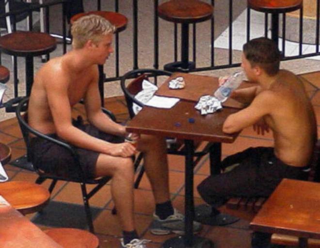 Keywords: Cairns Cafe.jpg en Two young guys shirtless at a cafe in Cairns Australia own DogTwo 2009-07-15 Cc-zero Black clothing male Cafés in Queensland Cairns Queensland Portraits with 2 persons July 2009 in Australia Male blond hair Men facing left and looking left Men facing right and looking right Men of Australia Men wearing shorts Nude or partially nude men with bottles People of Australia in 2009 People sitting at tables Rectangular tables Restaurant tables Topless sitting men 2009 in Queensland 2009 photographs 21st-century men 15 July |