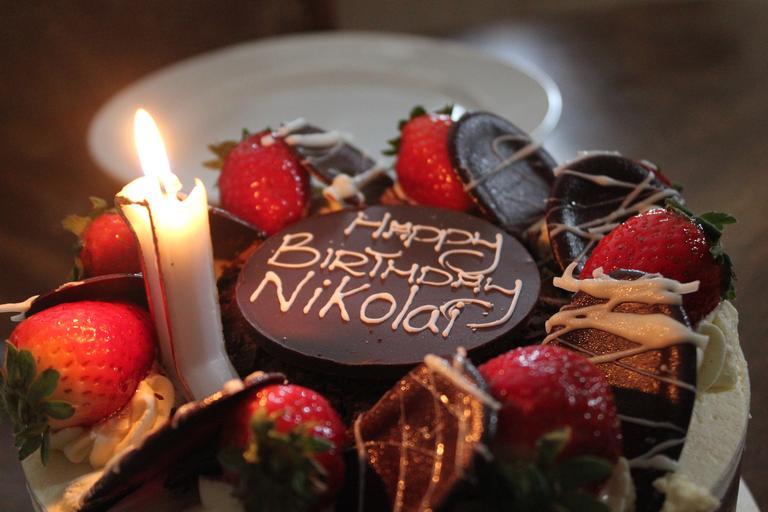 Keywords: cake candle strawberry chocolate birthday celebration food dessert sweet baked colorful celebrate