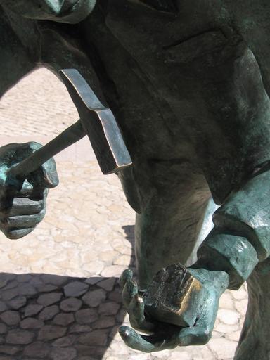 Keywords: Calceteiro2.JPG pt Pormenor da estátua do calceteiro em frente à igreja de São Nicolau Baixa Lisboa Own CorreiaPM 05/07/2008 Statues in Lisbon Portuguese pavement in Lisbon Stages of paving