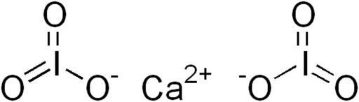 Keywords: Calcium iodate.png chemical structure of calcium iodate Own 13 50 21 November 2007 UTC Edgar181 Iodates Calcium compounds