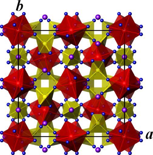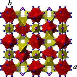 Keywords: Caldérite.png en Crystal structure of calderite Mn<sub>3</sub>Fe<sub>2</sub> SiO<sub>4</sub> <sub>3</sub> Ia<span style text-decoration overline >3</span>d projected onto the a b plane Red iron atoms purple manganese atoms yellow silicon atoms blue oxygen atoms Data source G A Novak and G V Gibbs 1971 The crystal chemistry of the silicate garnets American Mineralogist 56 5-6 791-825 own Perditax 2011-04-03 Cc-zero Calderite Crystal structures Manganese compounds Orthosilicates Crystal structures of iron compounds |